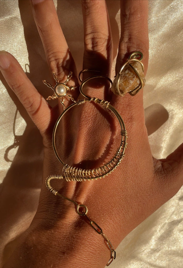 Expresa tu esencia única con nuestras sortijas exclusivas: diseños originales hechos a mano con alambre rojo y amarillo de brass de alta calidad, alambre AAA non-tarnish, piedras semipreciosas y desechos de mar. Una fusión de elegancia natural y creatividad artesanal.