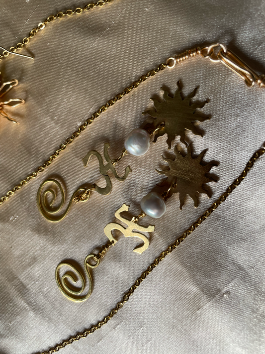 Bronce and yellow brass headpiece. Tocado de bronce y brass amarillo.