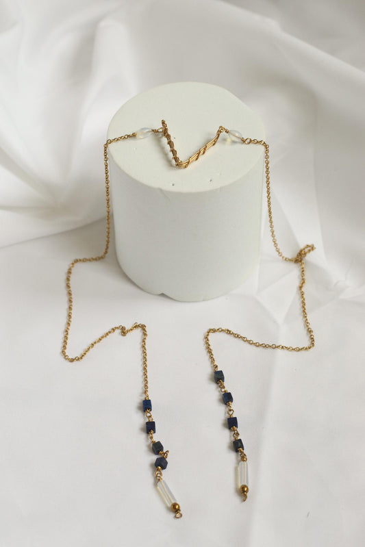 Atrapa cuerpos Brass y stainless steel/bodychain/Brass necklace/lapislázuli