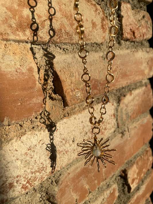 Handmade sun necklace / Artisan necklace / Cadena artesanal non tarnish / Cadena alambrada