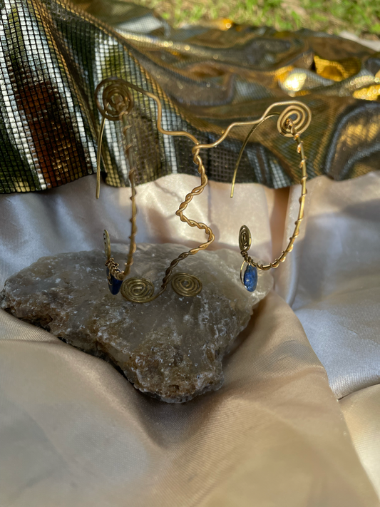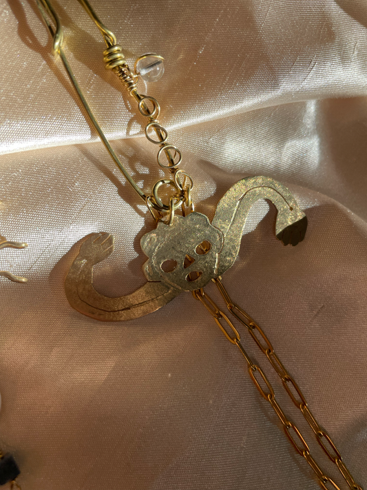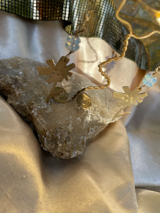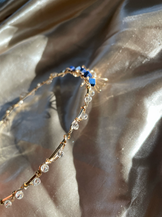 Choker artesanal con sol alambrado, cuarzo y lapislázuli
