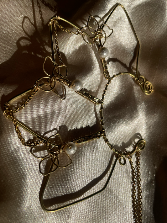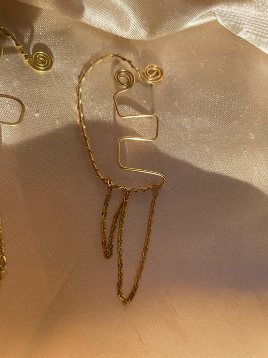 Earcuff de brass amarillo con perla nácar y cadena dorada