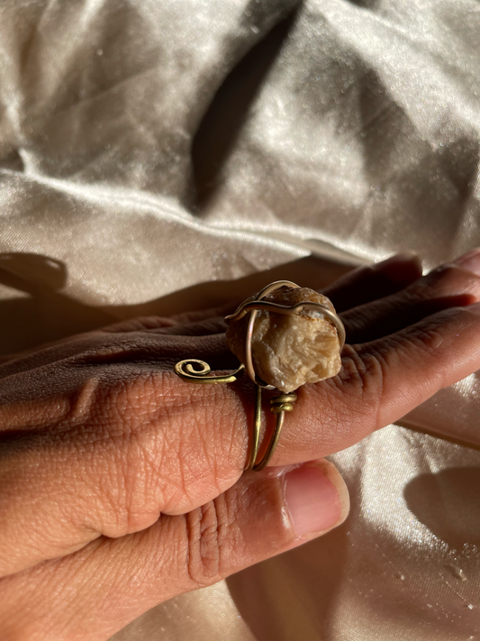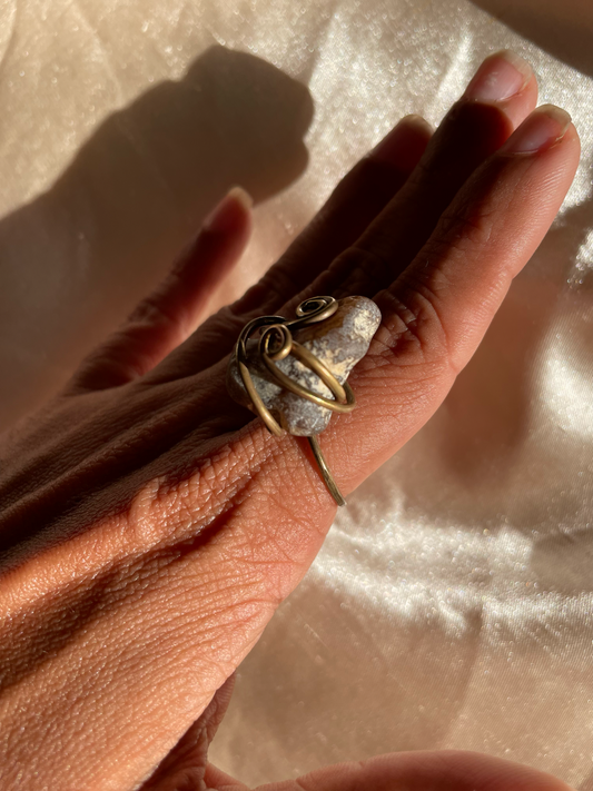 Sortija mineral con espiral de brass envejecido