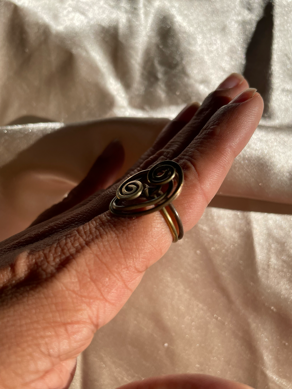 Una joya que honra el equilibrio y la dualidad. Esta sortija está hecha a mano con alambre de brass amarillo oxidado, formando dos espirales simétricas que evocan ciclos naturales, conexión y armonía. Su diseño minimalista y simbólico la convierte en una pieza versátil: ligera, cómoda y cargada de intención. Perfecta para quienes buscan una joya con significado, estilo y presencia sutil.